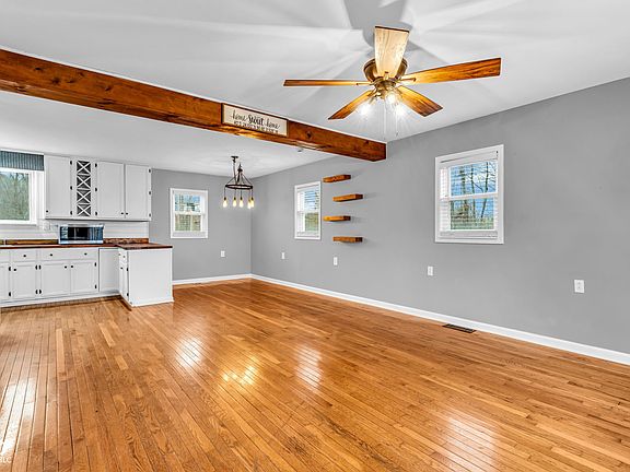 Two bedroomsAlmost three acresWarm inviting atmosphereBeamed ceilingKitchen peninsulaShaker cabinetsWalk-in closet