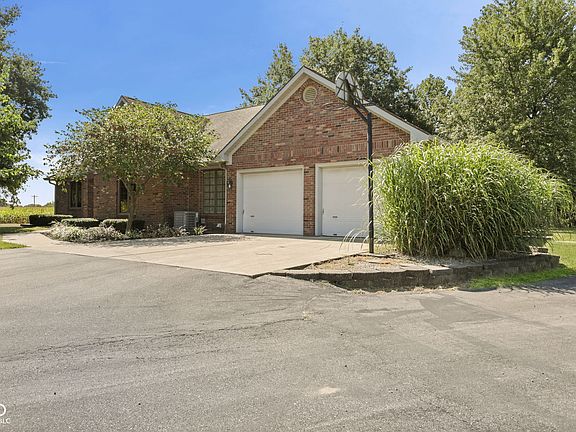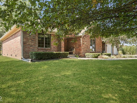 RARE FIND! Custom built, brick ranch with unique features you won't see in any other home! 4bd/2.5 bath, extremely well maintained, residential farm in Johnson County on 10.6 acres (8 acres leased for addtl income potential). Also includes a 40x60 pole barn (w/electricity, concrete floor, workshop, animal stalls area and hayloft/storage), 30x70 hoop barn (2019) with paved floor (last 20ft gravel) and electrical. Park-like setting with a large tractor playset, sand box, hammock, firepit and over 100 deciduous trees. Finished 2 car attached garage with pull down attic for additional storage. Hardwood floors with gorgeous solid wood inlay (signed by artist) and natural woodwork throughout including solid wood doors, cedar plank walls in the family room and indoor cedar porch swing! Remodeled bathrooms with double sinks and natural lighting. Farmhouse style half bath w/custom vanity, pedal powered well pump sink, galvanized basin & potential to add a shower to convert to full bath. Owners suite has a shower/tub & separate garden tub with jets and overhead skylight for soaking away the stresses of the day. The updated kitchen has tons of space with a large breakfast bar, granite countertops, tile backsplash, stainless steel appliances, double oven and gas countertop range making meal prep a pleasure, especially with the HUGE walk-in pantry and easy access to the 36x15 patio w/covered outdoor dining area for entertaining. Outdoor lighting, water access & electrical for RV hookup plus large fenced animal pen/dog run (shed excluded). This expansive property offers a sense of privacy and serenity, allowing you to embrace the tranquility of rural life living while still being close to town. Recent updates: NEW AC, gutter guards, and kitchen french door windows ('25). Water softener ('23 owned), well pump & pressure tank ('21), pantry cabinets and tile flooring ('25/'18).