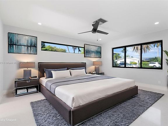 Step back in time while living in tomorrow's comfort. This architectural gem boasts terrazzo floors, meticulously restored to their vintage glory; walls of impact glass that dissolve boundaries between indoors and lush tropical surroundings; huge chef's kitchen w/ top-tier appliances that would make a culinary star envious; entertainment-ready patio featuring designer ceiling treatments; luxuriously reimagined bathrooms, including private guest and primary cabanas; smart home technology controlling climate, irrigation, and security. New roof/gutters (2025); updated electrical (2025); HVAC (2021); Complete hurricane protection and energy-efficient features. Mid-century charm meets South Florida sophistication -a coveted haven waiting for its next discerning owner.