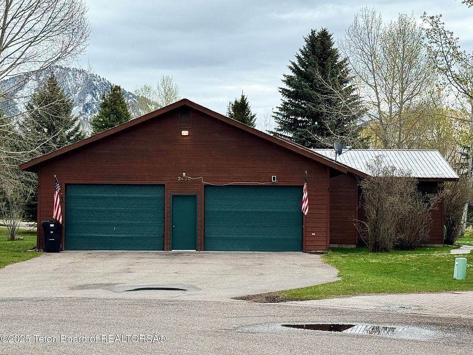 Located on a quiet cul-de-sac in Rafter J, this well-cared-for home sits on a .38-acre perimeter lot with mountain views and a spacious feel. Offering 1,746 sq ft of living space, the home also features a 910 sq ft oversized garage plumbed with hot and cold water, plus a 140 sq ft shed for added storage. Originally built in 1991 and updated in 2016, the home includes a metal roof, natural gas heating stove, electric baseboard heat, and an irrigation system with timers. With a functional layout, quiet location, and convenient upgrades, this home blends comfort, utility, and views—just minutes from all Jackson has to offer.