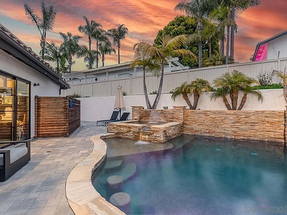 Experience ultimate North County coastal elegance in this breathtaking and recently updated home, offering an expansive entertainers backyard along with custom designer finishes inside, situated in the coveted Olde Carlsbad neighborhood on a private cal-da-sac. Completely remodeled in 2019, this 3-bedroom residence includes 2 recently remodeled bathrooms, a private office, and separate walk in storage space. The thoughtfully planned out layout features a primary bedroom custom walk in closet with a quartz countertop island and accessory drawers. The newly updated kitchen offers Wolf and Subzero appliances, wine fridge, and a large entertaining window that offers access to the outdoor dining area. Designed for the ultimate in entertaining, you and your guests will love the Salt Water Pool with attached jacuzzi, in water bar stools and lounge shelf. The backyard includes an outdoor kitchen, gas fire pit and a fully gated turf dog run. The exterior of the home boasts a newer smooth Santa Barbara finish, a modern driveway and an urban pivot front door with sidelight views into the home. Additional features include fully paid solar, large 2 car garage with slider access to the pool area, outdoor tv’s, and 2019 Anderson windows throughout. With easy access to the famous Carlsbad Village and beaches and top rated schools within walking distance, this is the home you have been waiting for.