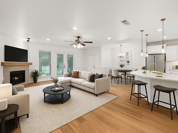 This GORGEOUS fully updated home blends timeless elegance with modern convenience. It sits surrounded by a canopy of mature trees that create a peaceful, park-like setting. Inside, the formal dining room is accented with crown molding and gold fixtures, offering the perfect space for special gatherings. The charming breakfast nook features a built-in china cabinet, adding both character and functionality. The kitchen is a chef’s delight with quartz counters, gas stove, new oven, new wine fridge, dishwasher, disposal, and extensive counter space with abundant storage and two pantries. A set of French doors leads to the back patio, inviting you to enjoy the tranquil outdoor views. The spacious bedrooms provide comfort and flexibility, while the luxurious primary suite is a true retreat. The spa-like master bath opens to an extraordinary 16 x 11 walk-in closet, complete with a custom 5 x 2 jewelry and clothing organizing stand, dedicated shoe shelving, and a sparkling chandelier. This home combines elegance, functionality, and serene surroundings—ready to welcome its next owners.