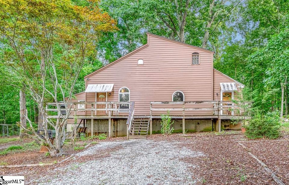 Located 15 minutes from Lake Robinson and Wade Hampton Blvd, Come and experience the great escape to this serene wooded sanctuary, where the warmth and character of a rustic retreat await your personal touches ( she's an awesome space, just needs a little TLC:-). Nestled among the trees on 2.6 acres with NO HOA, this charming mountain house boasts a stunning stone fireplace with pieces all hand-picked from the Saluda River, it's crackling flames casting a golden glow on the exposed beams and vaulted interior. As you step inside, the rustic charm and natural beauty of the surrounding envelop you, melting away the stress and tension of the busy world not too far away. The exposed beams, adorn with warm wood tones, add a touch of elegance to the cozy atmosphere, while the stone fireplace stands as a centerpiece, inviting gatherings and quiet moments alike:-) Large arched windows accent the main gathering area, allowing the beauty of nature and light to flood the interior. The perfect blend of rustic charm and modern comfort, this retreat provides a tranquil escape from the world, where you can unwind, recharge and connect with nature and the ONES you LOVE:-) Room to park your RV, places to build your firepit or outdoor entertaining area. Come see her before someone else snaps her up!!