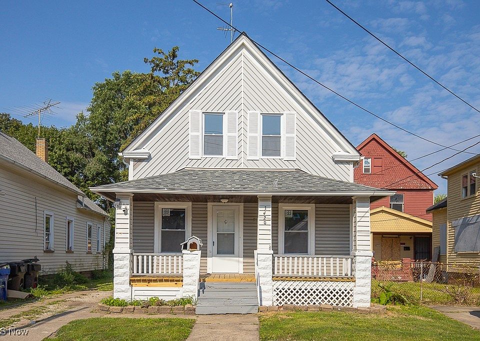 Tenant Occupied, Updated 3 bedroom, 2 full bathroom home featuring refinished hardwood floors and fresh interior paint throughout. Tenant pays $1600/month. The kitchen includes new cabinets and counters. Both bathrooms have been updated with tile shower surrounds, new vanities, and new toilets. Additional improvements include updated plumbing and electrical, new windows, and a newly built front porch. A spacious mudroom off the back entrance adds extra functionality. The property is lead-safe certified with the City of Cleveland. Solid updates and a practical layout make this home move-in ready.