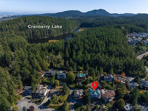Enjoy stunning, unobstructed water and island views from both levels of this incredible 4 BR home in the lower Rockridge area. The expansive decks on both levels offer the opportunity to take in morning light and spectacular sunsets. Main level living with fully refreshed kitchen, quartz counters, dining & living room w/stacked stone fireplace surround. Primary suite w/jetted tub embraces all the views! Lower level 2 BR apartment w/kitchenette & separate entry allow for multigenerational options. Metal roof with energy efficient solar panels, leaf guard gutters, new heat pump, and AC. Newer cement planked siding & fresh paint plus RV parking, all on large lot. Easy access to ACFL trails and Little Cranberry Lake!