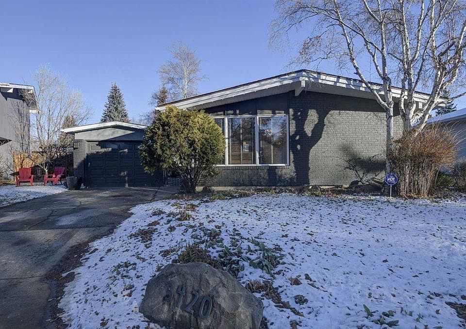 Charming 1125 sq. ft. bungalow sits on one of the best streets in Lakeview, situated on a pie-shaped 5,200 sq ft lot with mature trees, vinyl fencing, a large patio, and a storage shed. Inside, you'll find vaulted ceilings that enhance the spacious, open feel of the home, while the updated black kitchen with granite countertops and stainless-steel appliances adds a modern touch. The bright main floor includes a large primary bedroom with a walk-in closet, a generously sized second bedroom, and an oversized bathroom with a soaker tub and separate shower. The fully developed basement features a brick faced gas fireplace, a spacious rec room with a wet bar, a large bedroom (non-egress window), a 2-piece bath, and plenty of storage. Well maintained with updated roofing and furnace, this home also includes a front-facing single garage with driveway parking and rear alley access. Ideally located close to North Glenmore Park, top-rated schools, shopping, transit, and the Glenmore Reservoir, with quick road access to Crowchild Trail and Stoney Trail, making this one of Lakeview’s most desirable opportunities.