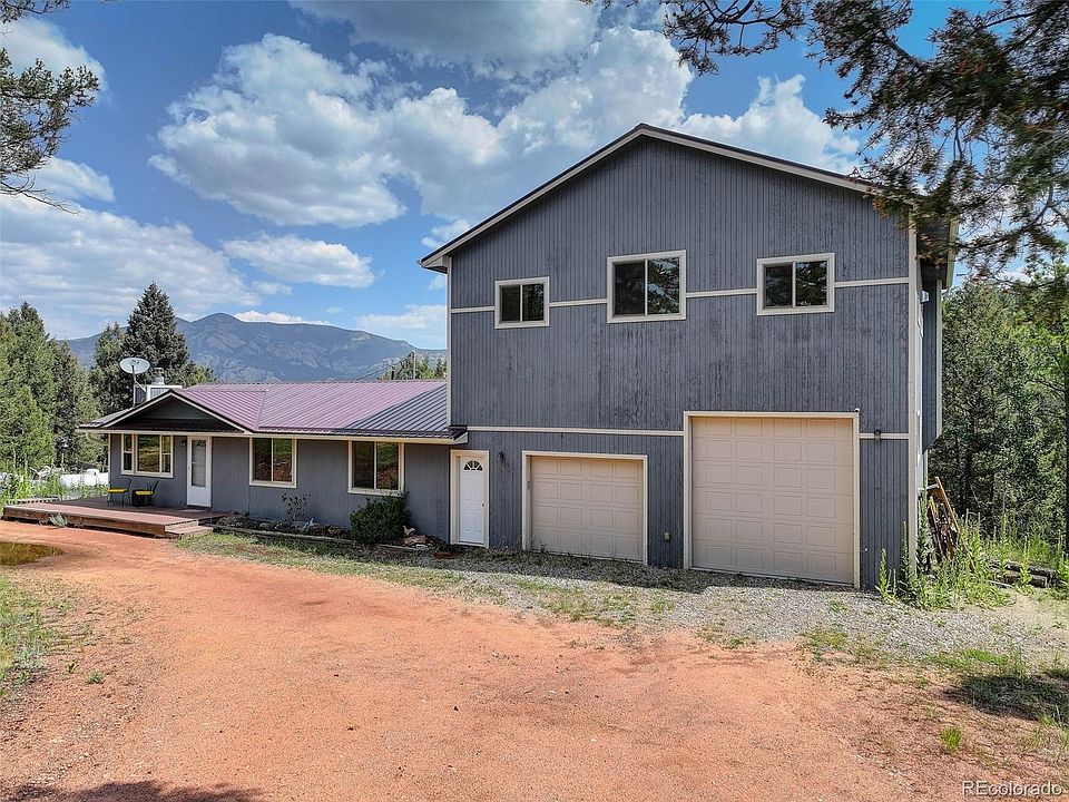 Versatile mountain living on over 1 acre of land with stunning mountain views!!! HUGE, separate, lock off loft above oversized 3 car garage can be used as multigenerational living, rental unit, studio, office, gym, rec room, etc... Breathtaking mountain views welcome you to this charming ranch home with no stairs in main home. The light & bright family room features custom fireplace, bar seating & opens to kitchen. The large kitchen features custom maple counters, bar seating, laundry area, pantry, dining area & deck access. Relax & entertain on the LARGE covered back patio while enjoying the gorgeous views. Generous primary bedroom with dual closets & great views. Renovated bathroom & 2 more bedrooms (one is non-conforming due to no closet) complete the main home. Durable metal roof & most windows replaced.