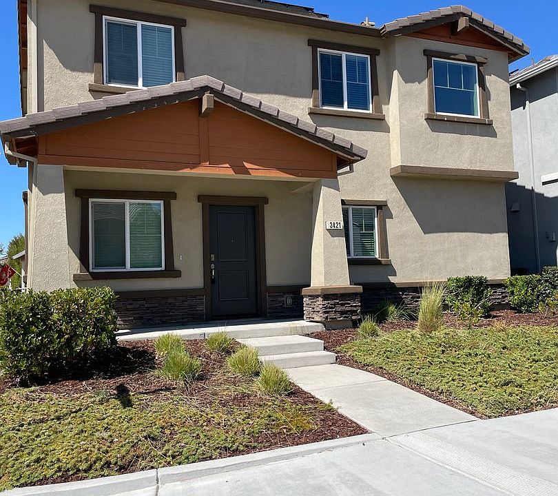 Welcome to this charming 3 bedroom, 2.5 bathroom home located in Sacramento, CA. This cozy house features plank flooring on the first level with living room, kitchen, powder bath and under stairs deep storage. The kitchen features stainless steel sink, stove, dishwasher, refrigerator and built-in overhead microwave. The 2 car garage is perfect for parking and storage. Upstairs are the good sized bedrooms with vinyl blinds and carpet flooring. The hall bath has a single sink vanity, good overhead lighting, shower/tub combination with linoleum flooring. The laundry room has a washer and dryer available. Amazing and large primary suite with dual sink vanity, large walk in shower and walk in closet will be a treat. Enjoy the convenience of central heating and air conditioning to keep you comfortable year-round and solar to keep your utility costs lower. Step outside to relax on the patio or let your furry friend roam in the fenced-in yard. One small dog under 25lbs allowed. There is an additional $170 monthly surcharge for sewer & trash. This home is the perfect blend of comfort and functionality, making it an ideal place to call home. Don't miss out on this opportunity to make this house your own.