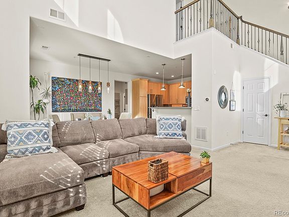 This is a spacious and modern two bedroom, two bathroom townhome that boasts a comfortable and stylish living space. With an open floor plan and plenty of natural light, this townhome is perfect for entertaining guests and relaxing with family. The bedrooms are located on opposite sides of the home, providing privacy and quiet for all residents. The primary bedroom has a large walk-in closet with custom organizing storage. The townhome also has a private outdoor space and a convenient attached oversize garage. Only 7 years old built by Shea Homes includes upgraded options with maple cabinets with soft close drawers. Quartz counters, upgraded sink and stunning tile throughout. The handrail upgrade is a stunning touch. Wired for surround sound, smart thermostat and door bell included. TV mounts included. Ground Floor entry with custom storage closet and garage, head upstairs to the great room, upgraded gas fireplace, 20 foot high ceilings causing loads of natural light, plantation shutters, engineered floor and balcony for BBQ and relaxing. The second bedroom is tucked back for privacy and the second full bathroom on the main floor has the upgraded corian counters. Head up the stairs to the primary bedroom and enjoy the 5 Piece Bathroom with large soaking tub and upgraded marble counter top. Enjoy the mountain view as you prepare for the day, and end your day. Tresana Community offers pool, hot tub, community building, walking trails. Also take advantage of the Highlands Ranch community recreation centers.