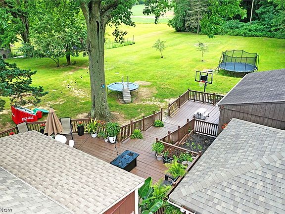 On the border of Lordstown with its handsome brick construction, wraparound deck and fantastic front sunroom, this Warren residence has tons to offer! Set in a tree line lot that creates a park like setting, this home takes full advantage of its surroundings as you relax on the tiered rear patios that drop down to a two-car garage which would make an excellent workshop and adjoining carport. Inside, a welcoming living room opens just past the sunroom and its window-lined offerings. Hardwood style floor stretches out to find an elaborate fireplace. Around the corner, enjoy a home cooked meal before an oversized picture window that spills sunlight into the cabinet lined kitchen. Stainless appliances add to the bright work within the wrapping design. A short hall finds a delightful first floor full bath and nearby guest bedroom. Upstairs, the two remaining loft styled rooms have been treated to sleek, modern updates with built in dressers / desk with custom cabinet storage and soothing colorways. At the basement level, laundry and workshop space is available along with a secondary shower. This charming move in ready home has the buyer confidence with New siding 2024, new windows and appliances less than 5 years old, new living room and upstairs flooring, new roof 2019 and HWT / AC / Furnace in 2009.