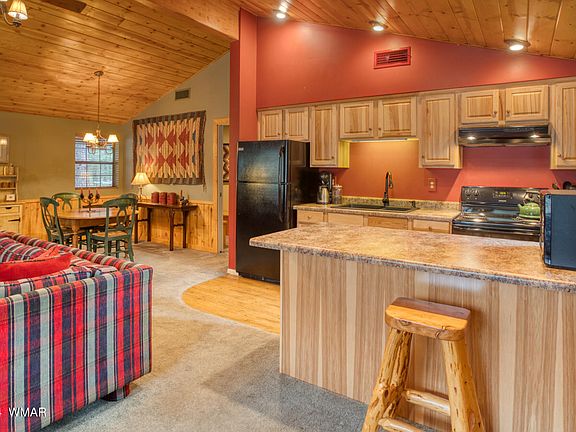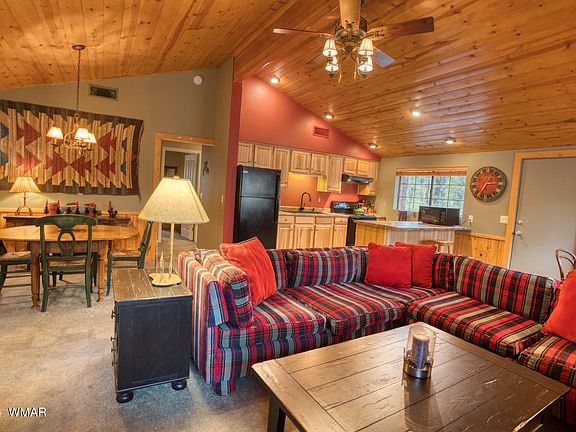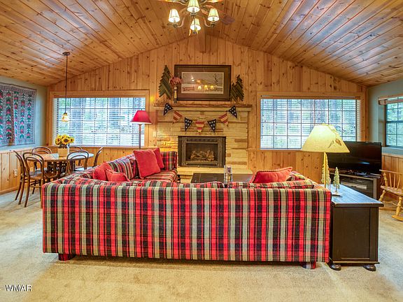 White Mountain Summer Homes. Adorable 2 bedroom, 2 bath, 1 car garage on .82 acres. Knotty pine, vaulted ceiling, wood burning fireplace. This home has been updated and oozes charm! Master has en-suite bathroom w/ separate tub and shower. Open living room to kitchen. Won't last long!