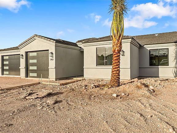 New construction in Sunridge Estates quality craftsmanship from A Better Builder. This thoughtfully designed home blends modern finishes with practical comfort, featuring tile floors throughout, elegant baseboards, and sleek stainless steel appliances. The kitchen is the heart of the home with quartz countertops, a center island, soft-close cabinetry, and plenty of storage and prep space. The split floor plan offers privacy, with the primary suite showcasing dual vanities, a walk-in shower, and a generous walk-in closet. Guests will appreciate the spacious bedrooms on the opposite side of the home. Step outside to a full-length covered patio perfect for relaxing or entertaining after a day on the water. And for those who love their toys, this home includes an impressive 35-foot boat-deep garage totaling approximately 1,000 sq. ft. ready for your boat, side-by-sides, or extra storage. Located minutes from Lake Mohave and nearby casinos, this home delivers style, function, and freedom all with no HOA.