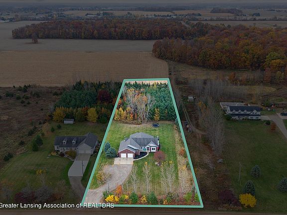 Sprawling Ranch on 2 acres! Plenty of room in this 5 bd rm, 3.5 bath home. Sunlit kitchen with pantry, breakfast bar, and island. Plenty of room for more than one cook! Tons of room to entertain with: casual dining area and Solarium area to enjoy the view from the multiple windows off the back. Formal dining room with French doors could be an office. Architectural details throughout the home with cathedral, tray and vaulted ceiling. Built in window seats with storage in 3 bedrooms. Huge laundry room with sink and more storage space. Mudroom has locker space for the kids. Master bedroom suite offers a double vanity, soaking tub, separate shower, and a super sized walk in closet. Garage has stairs to the basement, and the wood burner. The lot is close to town with about 1 acre of Trees!