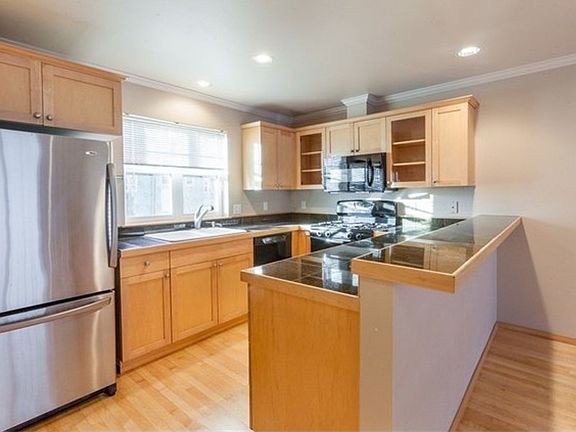 This gorgeous, modern townhome features a hardwood floors, fireplace, deck and private courtyard. Rent includes a 1 car garage as well as off street parking. Prime location for commuters, and plenty of light and space for anyone who works from home. Pets are accepted with an additional refundable deposit. Tenants pay all utilities. Refundable security deposit is 1 month's rent. Minimum income of 3 times monthly rent required.