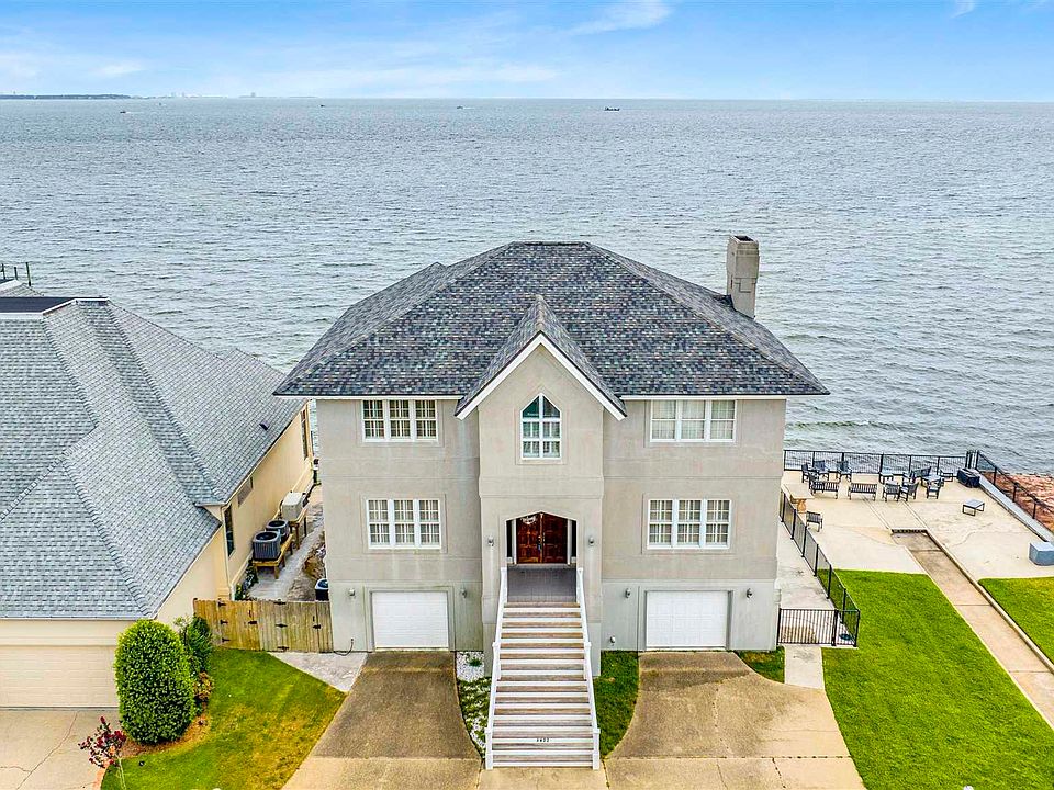 Discover exceptional waterfront living in the highly coveted Chantarene neighborhood. This expansive 3-bedroom, 2.5-bath residence, offering nearly 4,000 sq ft of interior space, provides an incredible opportunity to create your dream coastal retreat. While the home awaits your personal updates, all major repairs have already been completed, allowing you to focus on customizing the finishes to your style. A welcoming and elegant foyer flows seamlessly into the spacious great room, where sweeping views of Pensacola Bay immediately steal the show. This impressive gathering space features built-in bookcases, a wood-burning fireplace, a built-in bar, and direct access to a large waterfront deck—the perfect place to enjoy stunning sunsets and gentle bay breezes. The main level also includes a formal living room and formal dining room, ideal for entertaining. The well-appointed kitchen offers a breakfast bar, cozy breakfast nook, convenient butler’s pantry, and an easy connection to the dining room. A half bath completes this level. Take the elevator—or the stairs—to the upper floor, where an extraordinary primary suite spans a generous portion of the level. Fit for a king and queen, the suite includes a substantial bedroom with access to a private upper deck overlooking the bay, a massive walk-in closet, and a luxurious ensuite bath with double vanities, a jetted garden tub, a separate walk-in shower, private water closet, and direct access to the laundry room. Two additional oversized bedrooms with large closets share an adjoining full bath. Additional features include a three-car garage and a large ground-floor level offering abundant storage and an elevator that services all floors, making everyday living effortless. Bring your imagination and transform this well-built waterfront property into a spectacular personal oasis—one perfectly positioned to enjoy the best of Pensacola Bayfront living.