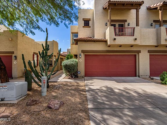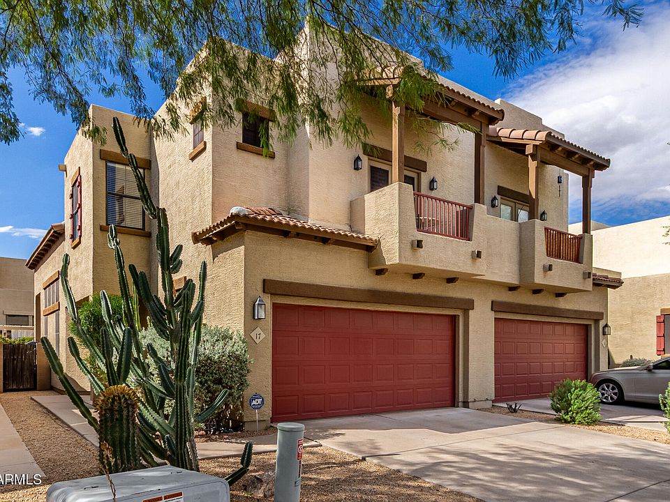 Located right across from the community pool, this inviting 3 bedroom, 2.5 bath home offers a functional great room floor plan with vaulted ceilings, fresh tile and brand-new carpet throughout. The kitchen delivers plenty of cabinet space along with a pantry, smooth-top range and built-in microwave, plus a reverse osmosis system. Laundry is conveniently located upstairs, and the spacious owner's suite features its own private balcony. Bedroom two even includes a built-in desk area—perfect for work or study. Step outside to your own private retreat with a flagstone patio, synthetic grass and lush landscaping. Complete with a 2-car garage and a prime Mesa location, this home checks all the boxes for easy living.