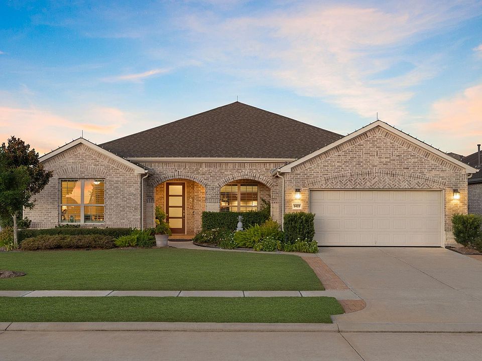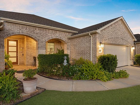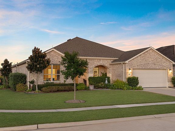 Magnolia w/Sunroom, situated on desirable N/S corner lot in 55+ Del Webb. Light-brick hm w/upgraded mortar surrounded by lush landscaping creates private oasis. Inside, porcelain wood-look tile flows through main living areas, complemented by stone gas fireplace, wood mantel, plantation shutters, glass jewel-cut dining light, pineapple pendants over island, custom framed BR mirrors, tasteful half-bath wallpaper. Kitchen shines w/white cabinetry, highest-level granite, crushed-granite sink, over/under-cabinet lighting—& all appliances convey. Enjoy airy sunroom & gathering rm’s tray ceiling, mirrored in owner’s suite showcasing spa-inspired shower w/flush entry. Additional highlights: tandem garage, lightning rods, water softener, whole-house surge protector, sprinkler system, instant hot-water heater, vessel-bowl half-bath sink, built-in mud bench in laundry rm. Backyard features irrigation system nourishing Japanese blueberry, olive trees, custom professional landscaping, storm door.