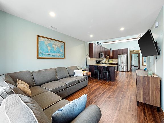 Heart of Roscoe Village 2 flat with architecturally trendy owners duplex. Just a short walk to coveted 1+ Audubon School district. 1st floor is currently rented has large desirable floor plan. Generous room sizes , closets,Living/dining ,eating area in Kitchen,2 beds, 1 bath plus office. 2nd floor duplex has to be seen to be appreciated. Peninsula Kitchen with breakfast bar showcased by dramatic 18 foot vaulted ceilings. Black coffee maple cabinets with Giallo ornamental granite. Led lighting,LG appliances, baths updated in 2015. Functional use of the space. Living room and Dining both adjacent to the kitchen. Great for entertaining. 2 bed, shower bath and utility room round out this floor. The lofted upper level with primary bed/bath in rear with a cool bridge hallway to the large office/sitting area in the front. 2 stairwells for access to second level. Thoughtful closet and storage space. Lovely large rear yard with patio pavers for entertaining /play. Seperate W/D in basment for each unit. 2015 tear off roof by previous owner.Seller has replaced 2nd floor HVAC system (2021),both hot water tanks(2020),and front porch (2022). 2 car garage serviceable needs TLC AS IS