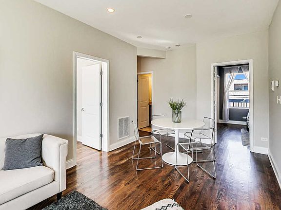 Amazing LOCATION in the heart of Lakeview, the Southport Corridor, and Wrigleyville! This freshly painted, 2 bed, 2 bath TOP floor condo features a split bedroom layout, exposed brick, hardwood floors throughout, and an upgraded kitchen with granite countertops, backsplash, stainless steel appliances and 42" cabinets. The master bedroom features a walk-in closet and en-suite upgraded bathroom. Both bedrooms feature walk-in closets with Elfa system organizers. This unit is the perfect option for someone that needs extra space for an office or guest bedroom. Additionally, the living room is wired for surround sound, there is central heat and air, and best of all: washer/dryer in unit, which was recently replaced! No more trips to the laundry room; no neighbors above you. Take in the beautiful sunsets off the back deck while grilling out, completing everything you want in a home. There is also a common side yard that's great as a dog run, extra storage, easy street parking, and it's walking distance to the Southport brown line and Belmont red line stops, as well as plenty of shopping, restaurants, and more in this perfectly central Lakeview location.