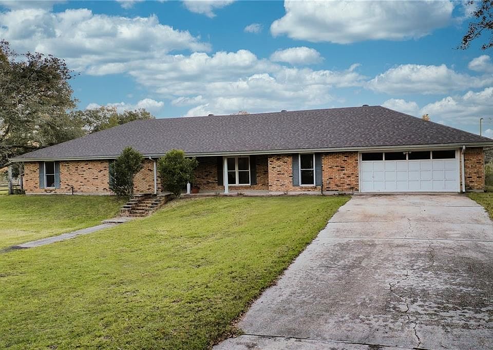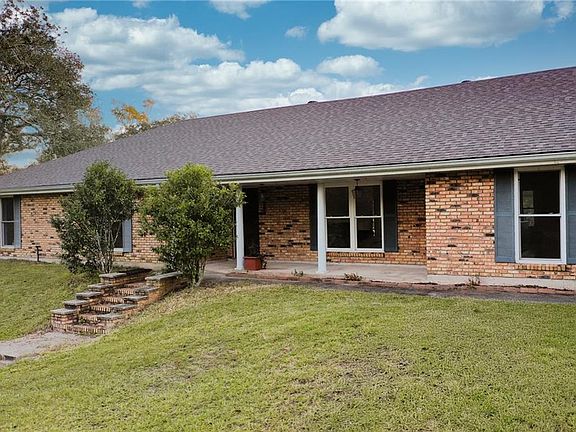 Wonderful home on over an acre of land. Right across from the bayou, private boathouse, boat-slip included on navigable water and a quick boat ride to the lake. Huge den with soaring ceilings, fireplace and tile flooring. Gorgeous kitchen with custom cabinetry, center island, granite and stainless steel appliances. Formal dining and breakfast area. Primary bedroom has an on-suite with spa tub, large walk in closet and door to the patio. 800 square foot patio with relaxing pond and waterfront views. Boat lift and dock behind the house right across the street to deep water access. Attached garage plus detached garage/workshop and carport. Huge utility room, mature landscape and fruit trees.