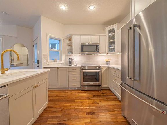Searching for a home in the coveted neighbourhood of Parkdale means you already know you want to be within walking distance of Foothills Hospital, Bow river pathways, access to 16 Ave, Stoney Trail, Memorial drive, the University, Kensington, Shouldice and Edworthy Parks.....the location is unbeatable! This delightfully updated, professionally decorated and superbly maintained 4 level condo presents like new with over 2100 square feet of developed space, complete with a loft, hardwood floors, stainless steel appliances and designer colours. Distinctively, the kitchen is a show stopper: located on the main floor adjacent to the dining room and main living room, it features immaculate appliances, quartz countertops and spacious outlay for food prep and entertaining. The living room is complete with gas fireplace and patio doors to a paved outdoor sitting area. Uniquely, the loft is ideal for additional living space, home theatre, family room, hobby room or home-based business and has a welcoming, intimate vibe. The newly developed basement has a modern bathroom featuring oversized shower, as well as a sitting room/ office and cozy bedroom. The second level is entirely dedicated to bedrooms: both the spacious master and 2nd bedroom feature ensuite baths. A new furnace and fresh paint are additional upgrades to warm up the space, and a new roof has been installed in the last few years. Enjoy parking in the shared garage with alley access for convenience. The reserve fund is healthy and the self-run condo corp. means low condo fees and no pet restrictions! Book a viewing today! Please be aware that a baby lives in the home and scheduling for viewings is crucial.