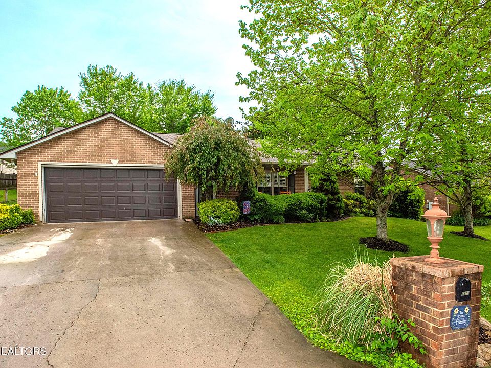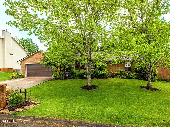 Karns showplace! A great room featuring a corner gas fireplace and a cathedral ceiling opens into the kitchen. The great room boasts hardwood floors, while laminate and tile cover the rest of the home. The primary bedroom includes 'His and Her' closets, crown molding, and a ceiling fan. Bedrooms two and three are spacious and also equipped with ceiling fans. The kitchen and baths have updates. A cozy screened porch leads to a park-like, fully fenced backyard adorned with trees and an abundance of glorious roses. The garage has shelving, a utility sink and sturdy pull down attic storage stairs. This fabulous home is full brick exterior and is within walking distance to Karns elementary and middle schools, close to the Karns library, Ingles, and more.