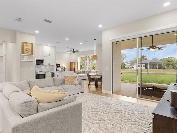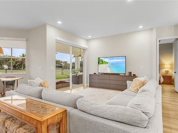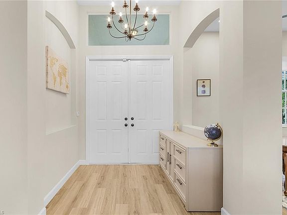 Major Price Reduction! Like brand NEW construction without the CDD tax & high HOA fees! New Stone Coated Steel Roof 2024!! New HVAC 2023, New Water Heater 2024! Double front doors invite you into this completely renovated, open concept home with water views throughout - boasting 10ft ceilings for a grand feel. New luxury vinyl flooring makes the rooms cohesively flow together, from the formal dinning room to the stunning kitchen - upgraded quartz countertops and waterfall edge, floor to ceiling cabinets with slow close doors and stainless steel appliances. There is a breakfast nook, under counter seating and a den off the kitchen perfect for an office, playroom and family room. The spacious living room has sliders that walk out to an oversized tiled lanai ideal for lounging and eating. Escape to the huge primary suite with sliding glass doors, custom black-out shades, dual walk-in closets, and a large spa-like bathroom with tile to the ceiling, brand new soaking tub, enlarged glass shower and custom vanities. There are two additional bedrooms, one with custom closet storage, a fully renovated bathroom & the laundry room of your dreams - outfitted with custom cabinets for added storage, new washer & dryer and a counter to fold clothes or use as a drop zone. The garage has built-in hanging storage and an extra long driveway for added parking. Freshly painted inside and outside, upgraded irrigation system, a fenced in yard for added protection and all new landscaping make this home one you don’t want to miss! Waterways of Naples is one of North Naples most beloved communities for their low fees ($710/quarter) and amazing amenities: cable & wifi included, community pool, fitness center, clubhouse, playground, tennis and basketball courts. Plus Waterways is one of the only communities in all of Naples with a Gated Storage Lot within the community to park your Boat or RV!