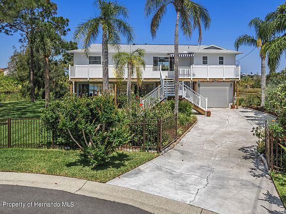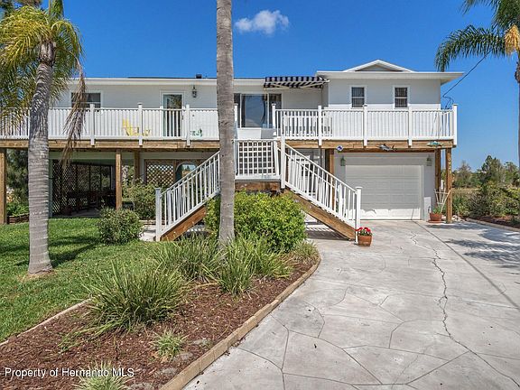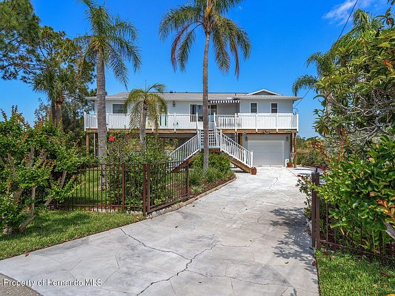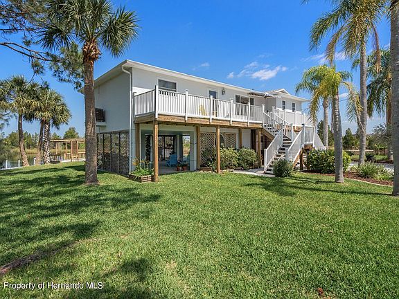 Nestled in the charming waterfront community of Hernando Beach, this immaculate residence presents a blend of modern comfort and coastal elegance. Offering a split floor plan, this home encompass both privacy and functionality, ideal for effortless living. Step inside to discover luxurious 2012 LVP flooring that guides you through the inviting space. A 2024 roof, new electrical panel and a new hot water heater provide peace of mind, while hurricane windows throughout and a solar panel powered heat removal system in the attic offer added security and energy efficiency. The home's high ceilings create an airy ambiance, enhancing the sense of spaciousness. The kitchen features new appliances replaced just last year, granite countertops, and ample cabinet space. New ducts installed in 2012 ensure optimal air circulation, while an outside elevator installed within the last 3 years adds convenience for easy access to all levels. Enjoy the epitome of outdoor living in the great outside entertainment area, complete with a lap pool and a newly installed fence for added security. The dock, just 3 years old, offers the perfect spot for boating enthusiasts, with 152 feet of seawall along the corner lot providing ample space for docking. The boat lift is literally a minute away, making gulf access a breeze. Surrounded by the Weeki Wachee Preserve, this home offers a serene setting with access to a variety of amenities. Enjoy a multitude of restaurants, live entertainment, and local shops just minutes away. The world-famous Weeki Wachee Springs and Weeki Wachee River are also within easy reach, offering endless opportunities for outdoor recreation and relaxation. Spend your weekends exploring the Hernando Beach ''Flats'' or embark on a quick boat ride to Anclote or the Homosassa River for a change of scenery. NO HOA fees and short-term rentals allowed, this property offers flexibility and endless possibilities for both homeowners and investors alike. Don't miss the opportunity to experience waterfront living at its finest in this meticulously maintained home, where every detail has been thoughtfully considered for the utmost comfort and enjoyment.