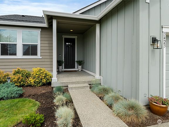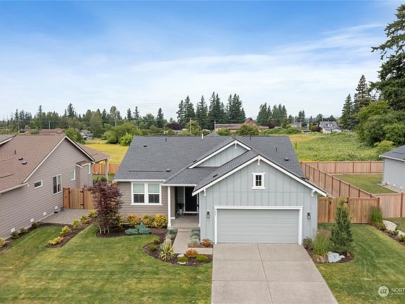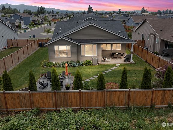 Welcome to this beautiful Pinnacle Peak home ideally located w/ no homes behind it & a view of Mt. Rainier. This home features $48,000 in options incl: a Chef's kitchen (built in oven & microwave, 36" gas cook-top, 42 inch cabinets) upgraded lighting, primary bath barn door, gas stub for BBQ, custom blinds, WiFi garage door opener, & a custom closet in the primary bedroom. The garage has a 4 ft extension perfect for storage or a small shop. The yard is fully fenced, beautifully landscaped & a patio perfectly situated to take advantage of the mountain view. Escape into the refreshing air conditioning on those hot summer days. This home had many builder upgrades & more done by the owners, so the only thing left, is move in & enjoy!