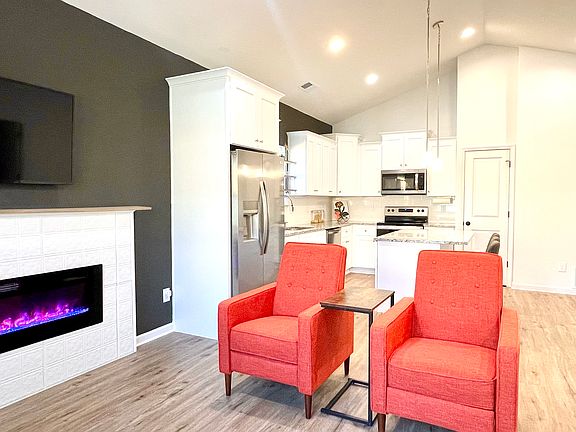 Spacious home includes vaulted ceilings and 9' walls. Two rooms furnished with queen size beds, and one room set up as office. 50" tvs in all rooms. Kitchen boasts granite countertops and plenty of cabinets. Includes 1 car garage. No smoking. 1 pet allowed w $400 non-refundable pet fee. All utilities and internet included.