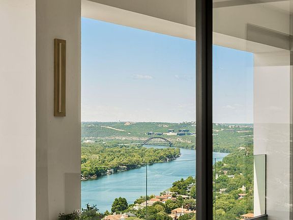 Discover unparalleled luxury in this extraordinary residence, dramatically perched on a cliffside to capture the most coveted panoramic views of Austin's beloved Lake Austin. This architectural gem offers sophisticated elevated living where every window frames breathtaking water vistas. Experience effortless main-level living where spectacular lake views command attention from every angle. The heart of the home features a stunning open-concept design seamlessly integrating the gourmet kitchen with dining, living, and sitting areas—perfect for both daily life and elegant entertaining. The primary suite, conveniently located on this level, offers a private retreat with expansive lake vistas, luxurious ensuite bathroom, and generous walk-in closet. Step onto the upper terrace through sliding doors that dissolve boundaries between indoor and outdoor living. Descend to discover multiple bedrooms, each with private ensuite bathrooms, plus a fully equipped gym for maintaining an active lifestyle. The substantial main living area provides additional space for relaxation, while behind a cleverly concealed bookshelf lies a delightful surprise—a hidden family room that adds whimsy to this exceptional home. The lower level also opens to its own expansive terrace through sliding doors. Both levels feature terraces accessible through elegant sliding doors, creating multiple opportunities to immerse yourself in commanding Lake Austin panoramas from your elevated vantage point. Whether enjoying morning coffee or hosting sunset gatherings, these outdoor spaces enhance the dramatic connection to Austin's most treasured landmark. Privately gated for ultimate exclusivity, this remarkable clifftop estate offers a rare opportunity to own Austin's most prestigious elevated real estate, where iconic views and thoughtful design create an unparalleled luxury living experience.
