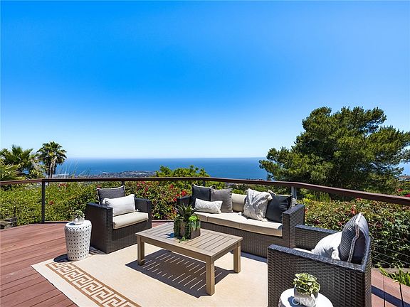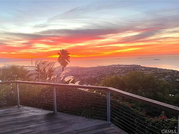 Remodeled with distinction by renowned architect Bob Halderman in 2000 with expansive Catalina and harbor and ocean views. The 2,719 sq ft home sits on a 23,670 sq ft lot with a custom 1,700 sq ft wrap around viewing deck that is complimented by lush landscaping creating the ultimate first impression. Double doors open to wood inlaid vaulted ceilings anchored by a stone fireplace. The living room with soaring ceilings and secondary fireplace open to incredible views of the ocean and beyond. The gourmet kitchen is equally impressive with massive open beamed architectural ceiling that set the tone for the culinary experience. Casual sitting is framed in by walls of glass and complimented by a cantilevered fireplace perfect for cozy winter evenings. The master wing is equally unique with a sitting area, fireplace and double glass French doors leading to the exterior deck to take in all the views. The spa inspired master bath enjoys a jacuzzi tub, separate shower, double sinks and plenty of storage. A secondary master is positioned with double glass doors that access the amazing massive viewing deck. Additional features include office/ laundry room, sky lights, tons of storage, and numerous fruit trees. A completely private and secluded estate set within 6 minutes from the 110 freeway. Residents have access to the top-ranked Palos Verdes Schools such as Mira Catalina Elementary, Miraleste Intermediate, and your choice from two of the top ranked high schools in California. Minutes away, you can enjoy a game of golf or dine at Terranea Resort.