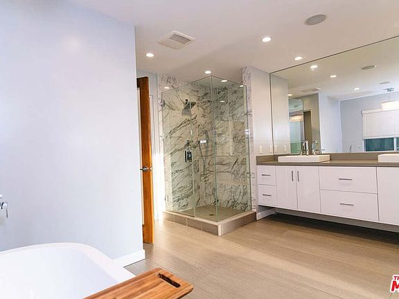 Fully remodeled in 2016, this stunning 5-bedroom, 4.5-bathroom home in prime Sherman Oaks blends modern luxury with smart living. Flooded with natural light, the open-concept layout features soaring high ceilings, a spacious living room, and an entertainer's dream kitchen with top-of-the-line appliances, sleek cabinetry, and designer finishes. The backyard offers the perfect space for relaxing or hosting, complete with lush landscaping and room to entertain. Packed with high-end amenities, this smart home includes a full HVAC system, integrated security cameras with facial recognition, smart lighting, and a cutting-edge automation system for seamless living. Located on a quiet street in a highly desirable neighborhood, this turnkey home delivers comfort, style, and next-level convenience. View endless sunsets in your large master suite which has a walk-in closet and spa-like bath featuring dual sinks, soaker tub and steam shower. Centrally located in the hills of Sherman Oaks with easy access to all of LA's top attractions. Walk into the backyard and drift away in the endless mountain views! Located in the Roscomare School district. Renter pays for water and power and gas