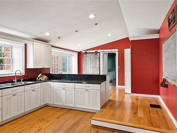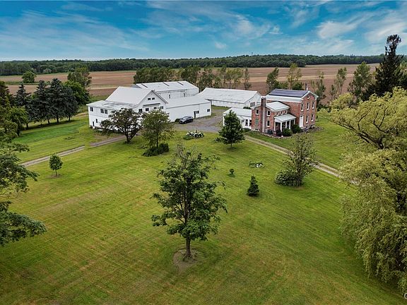 This stunning historical brick Federal Greek Revival home sits majestically on six eye-catching acres in Scipio Center, offering an extraordinary blend of period charm and modern convenience. The lovingly restored residence features soaring ten-foot ceilings, spacious rooms with original moldings, and has been thoughtfully updated while preserving its classical beauty. The property has the potential to generate rental income through its versatile barn complex, which includes a 1,750 square foot three-bedroom loft apartment, a 750 square foot ground floor apartment, a large shop, multiple garages, commercial space, and ample storage, plus a two-stall horse barn for equestrian enthusiasts. Recent extensive improvements by the current owner include new Anderson replacement windows, ten energy-efficient solar panels, a refreshed in-ground swimming pool with new liner, professional landscaping featuring ten eastern juniper trees creating an elegant hedgerow, a new Trane furnace and heat pumps, an underground propane tank, and new metal roofing throughout. The corner lot location provides both privacy and accessibility, while distant views and mature fruit trees enhance the property's natural appeal, creating endless possibilities for those seeking a unique combination of historical elegance, modern amenities, and income-producing potential.