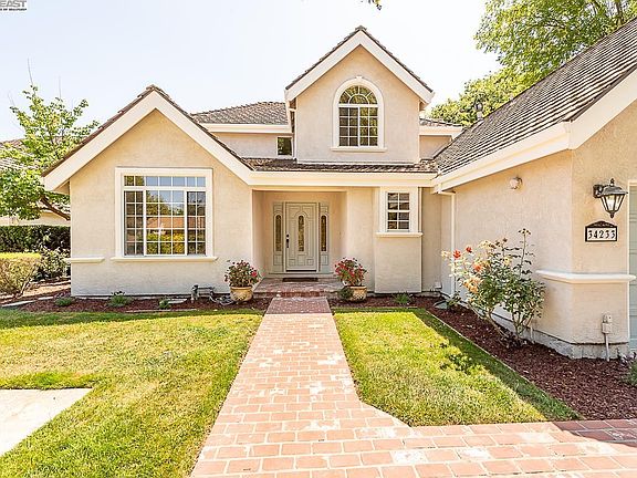 A rare opportunity to own this custom built home sitting on a premium lot along Alameda Creek Trail. Drive up to your secluded residence located off a private driveway. A one-of-a-kind home that offers 5 bedrooms plus a bonus area (optional 6th bedroom), 3 baths and 2,356 sq ft of open living space. Conveniently offering a full bedroom and bath on the first floor. Walk into the formal living and dining rooms with dramatic vaulted ceilings and tall windows allowing for ample natural light. The separate family room overlooks the charming backyard and opens to the large kitchen and breakfast nook. The remodeled kitchen includes new Quartz counters and rich cabinetry. Spacious bedrooms and remodeled bathrooms with modern finishes. A stunning, park-like yard with amazing outdoor living all surrounded by mature trees and lush landscaping. Walk outside to a private patio with covered pergola, fresh manicured lawn, outdoor BBQ area and pizza oven - an entertainer's dream! Prime location near restaurants and entertainment at Union Landing. Easy access to I-880/84, BART, Coyote Hills and major employers of the Bay Area.
