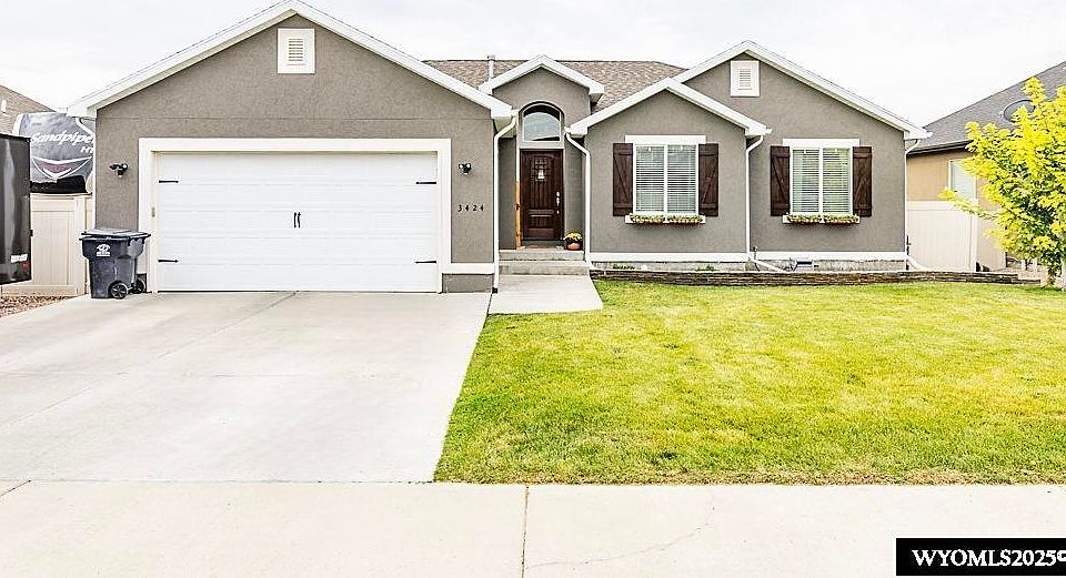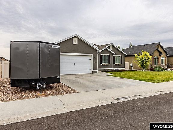 Welcome to this beautiful 5-bedroom, 3-bathroom home offering 2,600 square feet of comfortable living space in a quiet, family-friendly neighborhood. Step inside to a bright and open-concept main level, featuring a spacious living room with vaulted ceilings, soft carpet, and recessed lighting. The kitchen is a chef’s delight with granite countertops, stainless steel appliances, rich cabinetry, and a central island, while the dining area flows seamlessly to the backyard — perfect for entertaining. The primary suite includes a tray ceiling, a walk-in closet, and a private bathroom. Two additional bedrooms on the main floor provide versatile space for kids, guests, or a home office. The basement, newly finished in August 2025, offers a bright and spacious second living area perfect for family movie nights, a game room, or even a home gym. It also includes two additional bedrooms and a beautifully designed full bathroom with a double vanity and a sleek glass walk-in shower. Enjoy Wyoming summers in the large backyard, complete with dog run, green grass, a playset for the kids and a concrete patio perfect for the grill! Additional highlights include a two-car garage, low-maintenance landscaping, and a prime location close to parks, schools, and shopping. This home is move-in ready and has everything you need to create lasting memories with family and friends. For a private showing or more information call or text Nick Mende with High Country Realty 307-448-0023.