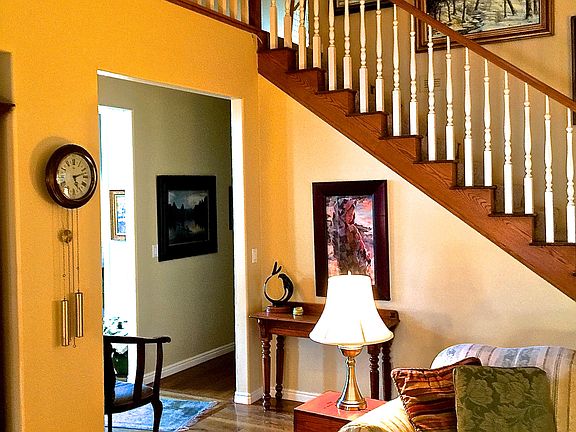 Beautiful home on .97 acre in Bloomington Ranches. Zoned for Horses! Floor plan features gourmet kitchen, formal dining, office/den, oversized master with his/her closets. Hardwood floors, high ceilings, fireplace, lots of windows for natural light and more! Indoor pool is perfect for entertaining! Fenced yard with room for horses. 4 shares of irrigation water.