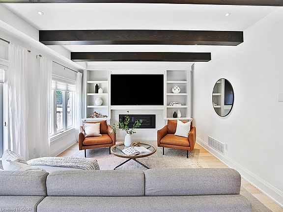 Nestled in the heart of the highly sought-after Bronte Creek community, this stunning, fully renovated 4-bedroom, 4-bathroom home offers approximately 3,900 sq ft of beautifully finished living space — blending timeless design with modern luxury. From the gorgeous curb appeal, artificial grass, and professional landscaping, to the immaculate garage, every inch of this property has been carefully curated. Step inside to a soaring open-to-above foyer and a modified layout that offers exceptional flow and function throughout. The heart of the home is an oversized gourmet kitchen with high-end appliances and a generous pantry, opening into a warm and inviting family room. Complete with exposed wood beams, custom built-in shelving, and a gas fireplace, it’s the perfect space to gather and unwind. The oversized dining room is ideal for hosting memorable dinners and special occasions — elegant yet welcoming. A custom home theatre offers the ideal space for movie nights, while the fully finished lower level expands your lifestyle with a spacious rec room, beautifully crafted wine cellar, and a relaxing infrared sauna — your own private retreat. Renovated from top to bottom and located on a quiet, family-friendly street, this is a truly turn-key home in one of Oakville’s most desirable neighbourhoods.