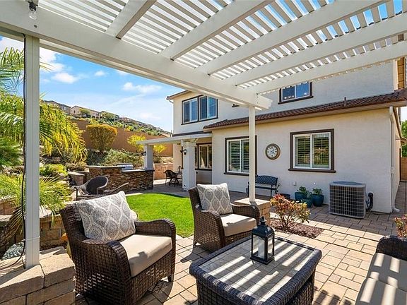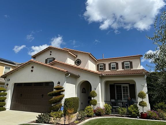 A Beautiful Mediterranean Home in the highly sought-after community of Morgan Hill, a rare trifecta of curb appeal, Incredible floorplan and a Beautiful Corner lot location! This desirable home is loaded with high end finishes and includes a gorgeous greenbelt VIEW offering complete privacy, 4 Bedrooms, 3 baths and an Open Concept floorplan that doesn't become available often! Leading to the front door you will be greeted with a cozy front porch and beautiful professional hardscape/landscape. As you enter the main residence the foyer opens to a flex space currently being used as a den but could be an office or a 4th bedroom. Adjacent to the Flex space is a 3-piece bath complete with walk in shower. Beautiful wood LVP neutral flooring leads you past the staircase to the open concept kitchen/family room area. A chef's dream... the kitchen features rich wood cabinets, white subway tile backsplash, upgraded stainless KitchenAid appliance package, large center island, beautiful quartz counter tops and custom pendant lighting. The large Family room features a cozy fireplace with beautiful custom-built in. Upstairs you'll find 3 additional bedrooms including a large primary suite and beautiful spa like primary bath, complete with makeup vanity, large soaking tub and large walk-in shower. The 2 upstairs guest bedrooms are roomy and feature ample storage. A large hall bath, upstairs laundry room with sink and custom built-in work space complete the second floor! The backyard is your own private oasis featuring an attached patio cover, a built-in barbecue island, a tranquil waterfall feature, fire-pit and a separate pergola area perfect for entertaining!! Last but certainly not least, a private and beautiful greenbelt VIEW! Enjoy sunsets and watching hot air balloons rise over Wine Country! No expense has been spared on this gorgeous home. The list of upgrades is long, surround sound, TV included, plantation shutters, built in closet systems, built in shelving, tons of storage and workbench with stainless fridge in garage, New carpet and LVP have recently been added, whole house fan, new garage door and opener, custom storage shed on the side yard and so much more! ALL this and Morgan Hill Community Amenities pool / spa / clubhouse / tennis courts and more! This home is located in the highly acclaimed Great Oak School District.