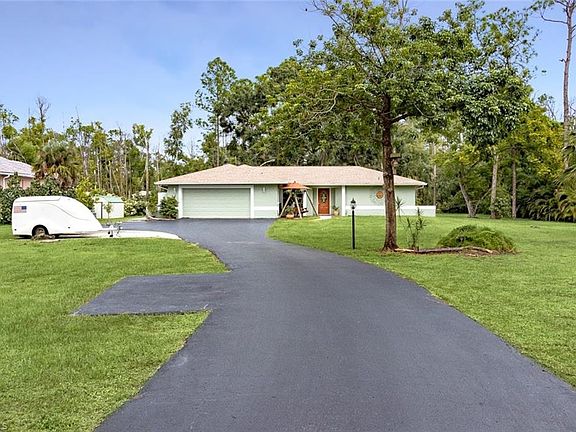 A Country Charmer in Naples, this cozy relaxing home, resting on over 2 acres. Upon entering you will be engulfed in all the detailed wood work that has made this house into a home. An over-sized master suite has hard floors, large windows and closets, the bath has dual vanities, a generous walk-in shower that is tiled throughout. The kitchen is the heart beat of this home, offering 2 pantries, large 42-inch oak soft closed cabinets, generous counter space, and a breakfast bar. The tiled family room leads out to the lavish enclosed lanai with views of the enchanted back yard. While back inside there are split guest rooms along with a 2nd lavatory. An ample laundry room off the kitchen leads into an extra-large garage. This home has been lovingly cared for which is evident upon entering its private gate.