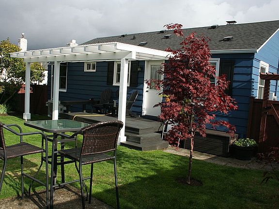 Light filled on even the most dreary days! Great alternative to condo/townhome living. Private fenced backyard, shed, mature trees and landscaping, covered rear deck, driveway with electric car charging station. Great room concept, with living/dining/kitchen open and inviting. Two bedrooms and one bath on upper floor, full finished space on lower daylight basement. Kitchenette, laundry, rec room and main bedroom/bath suite with privacy barn doors for flexible living spaces. Top of Magnolia outlook with partial views of the Seattle Skyline, Mt Rainier and the Cascade Mountain range. Second floor addition would provide spectacular views!!!