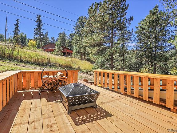 Welcome to this darling cottage, tucked away at the end of a quiet street on a rare, private ½-acre double lot with scenic views. This property blends vintage charm with extensive modern improvements for peace of mind, including a new electric panel, new roof, new sewer line, new interior & exterior paint, new deck, new bathroom & much more. Step inside & you will find warm character & ample space, starting with a cozy living room with hardwood floors & stone fireplace, and additional large sunlit family room. The updated kitchen is a gathering place, complete with all-new butcher block countertops & farm sink. Bar seating makes the kitchen a great place to hang, especially next to the cozy wood burning stove. The bedroom offers flexibility—perfect as a primary for main level living, or an office. Many rooms feature knotty pine, which can be left as-is or painted for a modern farmhouse look. Head downstairs to find a brand new kitchenette, 2 bedrooms with ample closets (one a walk-in), flex space for workout or crafting, laundry room & a lovely new bathroom with a luxury shower. This is an ideal primary bedroom area, with access to the yard. The newly built south-facing deck offers great outdoor living, as does much of the lot with plenty of flat area, fenced garden, privacy & views! The large attached workshop/storage has plentiful cabinetry & workbench Lots of parking too. This is a peaceful, private setting where one can hear the rippling waters of Bear Creek below. The darling hamlet of Kittredge offers so much - walk to the coffee shop, stroll to the park for a stream side picnic, experience fishing & miles of trails just 5 min away. And, it’s only 2 miles to downtown Evergreen with restaurants, shops, amenities & the lake. Or head to Red Rocks Amphitheater & all that Denver offers – just 12 min away! Public road and utilities, not to mention the plethora of upgrades, make this vintage charmer a modern delight! 3D Tour & more pics: www.3425 BurnhamDrive.com