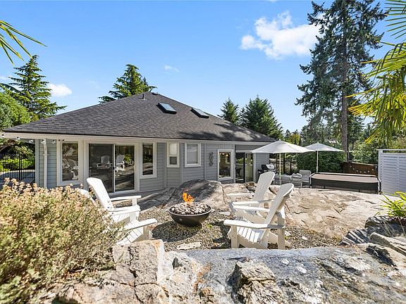 This home defines curb appeal, finished with a level of style you’d expect to see in a magazine. Bright and airy, it’s perfectly sized for a lock-and-go lifestyle. The open-concept living area is filled with natural light, featuring a quartz kitchen with new Bosch appliances, and designer tile backsplash. The dining area offers treetop views, while the living room with fireplace creates a warm gathering space. Off the main living area is a versatile office or sitting room. The primary suite includes walk-through closets, updated ensuite, and direct access to the backyard. Outside, the property is a true showpiece: composite decking, multiple seating areas, gas firepit, hot tub with grotto base, rock fountain, and terraced granite landscaping create an outdoor retreat for entertaining and everyday enjoyment. A renovated backyard bunkie adds flexibility as a home office, guest retreat, or studio. With thoughtful upgrades throughout, this stylish home makes everyday living extraordinary.