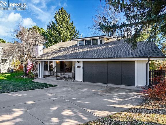 Located in a quiet cul de saq with a peek a boo view of the ninth tee, the pond from the Country Club of Colorado and in an award winning Cheyenne Mountain School district 12. When you walk in the door it feels like home, you walk into a gracious entry with an open stair case to the bedrooms upstairs with new hardwood throughout the second level. The living room has wood floors that run throughout the main level, vaulted ceilings and skylights making the home feel open and spacious. The dinning room has a fully equipped wet bar and walks out to the deck and large yard. The home has two fireplaces. The fireplace in the living room has been plumbed for gas but never converted and is still wood burning. The fireplace in the family room has been converted to gas for convenience, with a newly refinished mantle and rock face. The master upstairs has a window that overlooks the living room, but more importantly the fireplace giving it a cozy feel on cold Colorado nights. The office, which can be a bedroom has been added and connects to the attic for additional storage. There really isn't anything that will keep you from falling in love with this home! Come see why!