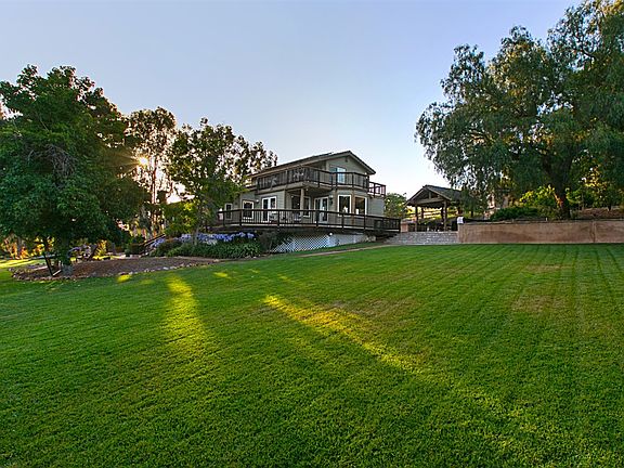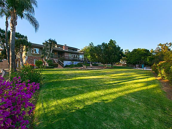 Beyond private gates of Dove Hollow in sought after Olivenhain community, find this immaculate custom home on a private cul-de-sac, offering serene setting on over one acre prime land. Lush green landscape, majestic palm trees, resort like entertainer's backyard featuring sparkling pool and spa, huge sitting area complete with cozy fireplace and built in BBQ. Array of fruit tress, vegetable garden and huge grassy area. Paid house solar. Multiple trek decking. Great horse property. Luxurious master bedroom with French doors overlooking private, lush landscaped grounds. Fabulous kitchen with modern cabinetry, granite counter tops, Thermador 6 burner stove, state of the art Miele espresso machine, wine bar with wine refrigerator, designer lights, granite counter tops, stainless steel appliances, soft close cabinetry, bread warmer, breakfast nook with French doors opening to wrap around Trek decking. Sunken Family room with romantic fireplace and huge windows overlooking picturesque backyard. Other features include front gated entry, paid solar for the house, third bath opening to pool and backyard, indoor laundry room, combination hard wood and tumble marble stone flooring, huge pantry, hi tech home with new Nest control Thermostat, built in speakers, Murphy bed and oversized 3 car garage. Zoned for 2 horses. Chicken coop conveys!