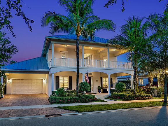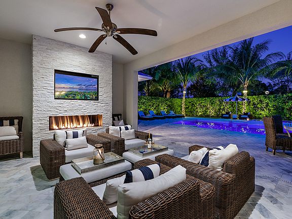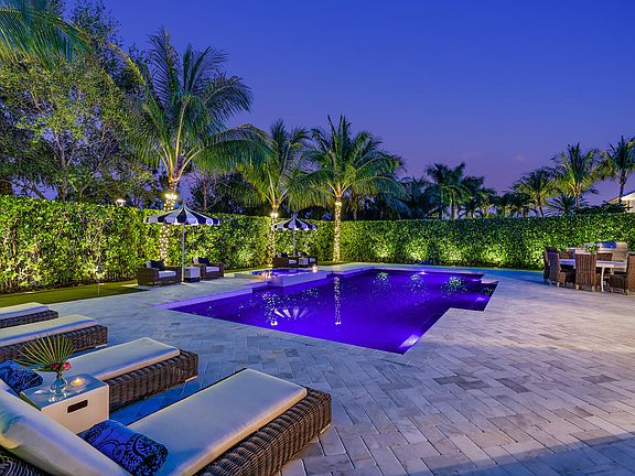 Stunning Property-Heart of Jupiter! 4BR/4.1BA + 2 offices. One of a kind custom kitchen boasting honed calcutta marble, custom island top made of Turkish Oak, custom cabinetry by Palm Beach Cabinet Co, pro series appliances with 2 ovens, 2 dishwashers, warming drawer, ice-maker and Sub-Zero refrigerator. Master Bath with custom-built vanities, Rohl plumbing fixtures, stand alone tub and a beautiful shower. Provenza Acacia wood flooring, extensive custom moldings, trim work and built-ins, and solid core doors throughout the home. Stacked sliding glass doors open to the most incredible private outdoor space; seating area with fireplace and electronic screen, putting green and 20 X 40 saltwater heated pool/spa with a Beadcrete finish, white glass waterline tiles, and a captivating..(see more)