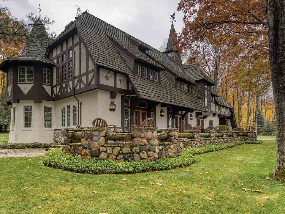 Welcome to Akwesasne!! The name Akwesasne in Mowhawk means "Land Where the Partridge Drums", referring to the rich wildlife in the area. Truly a one of a kind piece of northern Michigan property located in Goodhart, MI. Situated on a bluff above Lake Michigan, enjoy 875+ feet of Lake Michigan frontage and a motorized tram to get you to and from the water, as well as stairs if you prefer. There are a wide array of islands and lighthouses that can be seen from just about anywhere on this property. Sitting on the bluff gives an awesome vantage point for the panoramic view of Lake Michigan and it`s many beauties. Seclusion and privacy are felt throughout the 25 acre property as well, with a perfect mix of forest on sunlight. The Bavarian style architecture creates a unique and comfortable environment with spectacular finishings inside and out. The main house boasts 5,000 square feet of living space, with a full finished basement, equipped with a wine cellar. The hand crafted woodwork and marble countertops are absolutely stunning and must be seen in person to truly appreciate. This property has two guest houses on site that are both fully functional, each of them equipped with 2 bedrooms and a full bathroom. Just a 15 minute drive into downtown Harbor Springs. An additional 75 acres is available upon request..