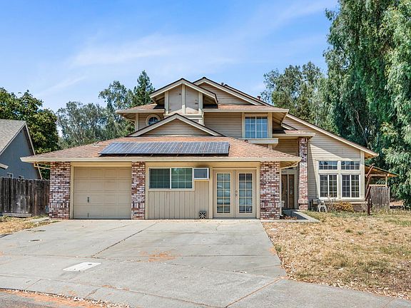 Spacious and move-in ready! This impressive 4 bedroom, 3 bathroom home offers room to grow with owned solar and thoughtful updates throughout. Step inside to a bright living room and formal dining area that flows into the kitchen, featuring a bonus eating nook and adjacent second family roomperfect for entertaining. Enjoy fresh interior paint, new carpet in the bedrooms, and updated baseboards. A guest bedroom and full bath on the main floor provide ideal space for visitors or multi-generational living. Upstairs, find three additional bedrooms with ample closet space, including a luxurious primary suite with a dual-sided fireplace, soaking tub, separate shower, and walk-in closet. The 3-car garage includes a converted flex space with wall AC, ideal for a home office, gym, or studioeasily converted back if desired. Sitting on a large lot, the backyard features a covered patio, plenty of grassy space, and potential for a pool. Conveniently located near Fahrens Park, the Marketplace at Merced, and Merced College. Don't miss this incredible opportunity!