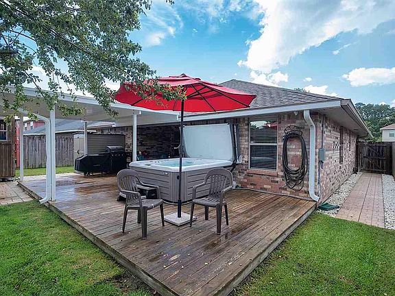 Fabulous 4 bedroom / 2 bath brick home is meticulously maintained and features a backyard oasis perfect for entertaining! This open bright floor plan features a spacious kitchen with breakfast nook, generous pantry, granite counters and stainless steel appliances. Tons of natural light flow from Solitude solar lights throughout kitchen and living room. Enjoy a large master suite with walk in closet and 3 other spacious bedrooms all featuring upgraded plank tile. This beautifully landscaped backyard is your escape, get ready for minimal yard work so that you can enjoy that hot tub and 20x16 deck. The Hotsprings 5 person hot tub is only 2yrs old and still under warranty! A handyman's dream featuring a 10x12 shed with loft AND 8x6 storage shed. Additional upgrades include plank tile in living room and bedrooms, Avycon security cameras, motion lights in front and back, gutters, custom shelving in garage and fabric window storm shields. Logan's Place is well situated off Mobile Highway and Blue Angel and convenient to Bellview Athletic Park, Fairgrounds and Wal-Mart Neighborhood Market. Come fall in love with all this home has to offer!