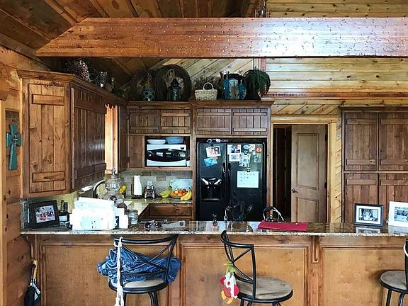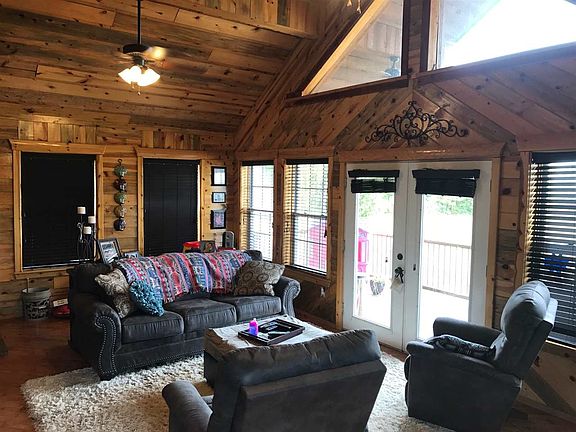 Picturesque 2 story cabin style 4bed 3 bath home with 2 living areas sitting on a beautiful 2.5 acres. Well maintained and freshly stained pine gives the home that lodge like atmosphere while you and your family can relax on a flat 2.5 acres. The details of this home are incredible with lots of windows which produce stunning natural light, wood floors, lots of storage, wood burning stove with custom granite backdrop,and granite countertops in the kitchen. You will find it easy to relax and entertain on a large front deck. The perimeter of the property is fenced and outside you will find an outbuilding for storage, firepit, storm shelter, and even an extended well house with living area and bathroom. So much more to see with this property you need to schedule a showing today!